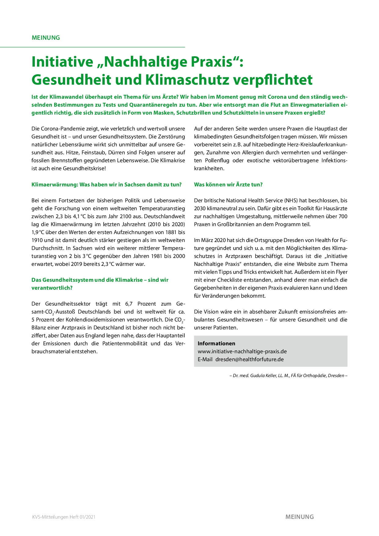 Wir können mit der Umstellung unserer Praxis zum Ziel eines emissionsfreien Gesundheitssektors beitragen und in unserem unmittelbaren Arbeitsumfeld für mehr Klimaschutz eintreten. Denn für unsere Gesundheit und die Gesundheit unserer Patienten sind intakte Lebensgrundlagen auf einer gesunden Erde (Planetary Health) unerlässlich. Saubere Luft, mehr aktive Bewegung, fleischarme Ernährung, grünere autofreie Städte und eine intakte Natur schützen den gesamten Planeten und helfen uns Menschen gesund zu bleiben.
